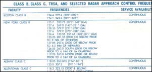 | Entering Class B airspace requires a mode C transponder and clearance to enter (meaning that ATC says the words, "Cleared to enter the Class Bravo"). Approach control frequencies are listed in a table inside the cover of the sectional chart, and in the A/FD. |